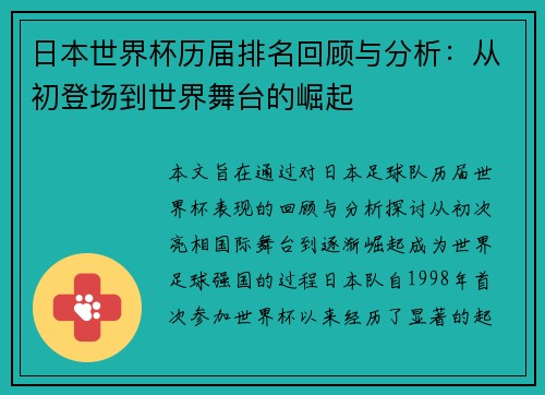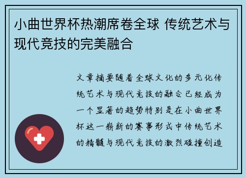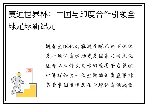 文章摘要:本文探讨了陶虹《世界杯掀起的足球狂潮》这一现象,并从四个方面进行了详细阐述。首先,文章分析了世界杯赛事如何激发全球足球热潮,尤其是对中国乃至全球文化的深远影响;其次,文章着重阐述了足球文化的传播及其在中国的特殊意义,进一步探讨了中国足球与世界杯赛事的互动与发展;再次,文中引用了世界著名大学的研究成果,结合数据分析,探讨了世界杯赛事对于各国经济、社会与文化的多维影响;最后,文章总结了足球狂...