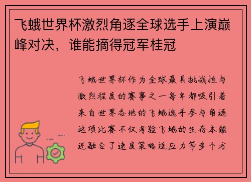 文章摘要:在世界杯赛场,足球不仅是一场体育竞技,更是一场英雄的集结与荣耀的征战。从球员到教练,每个参与者都为着最高的荣誉而拼搏。文章将从四个方面阐述这场鏖战的精彩与不易。首先,英雄们如何为荣誉而战,奋力拼搏;其次,世界杯的战术与团队合作的重要性;第三,心理素质在激烈比赛中的决定性作用;最后,现代数据分析对比赛策略的影响与实际应用。通过对这些方面的详细分析,展示世界杯赛场上所有英雄们如何拼搏到底,铸...
